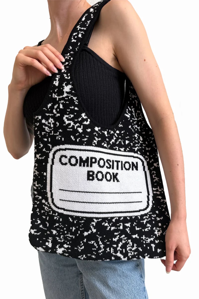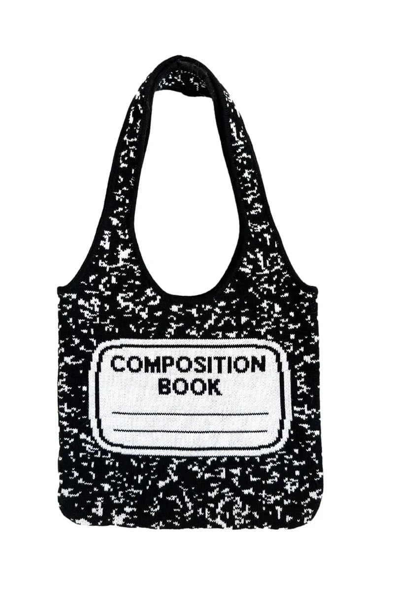Introducing the Composition Notebook Tote – where nostalgia meets modern style! Whether you're running errands or showing off your creativity, this luxurious yet playful tote has you covered. Crafted from 100% soft cotton and featuring a unique marbled knit pattern, it’s the perfect mix of comfort and class.
